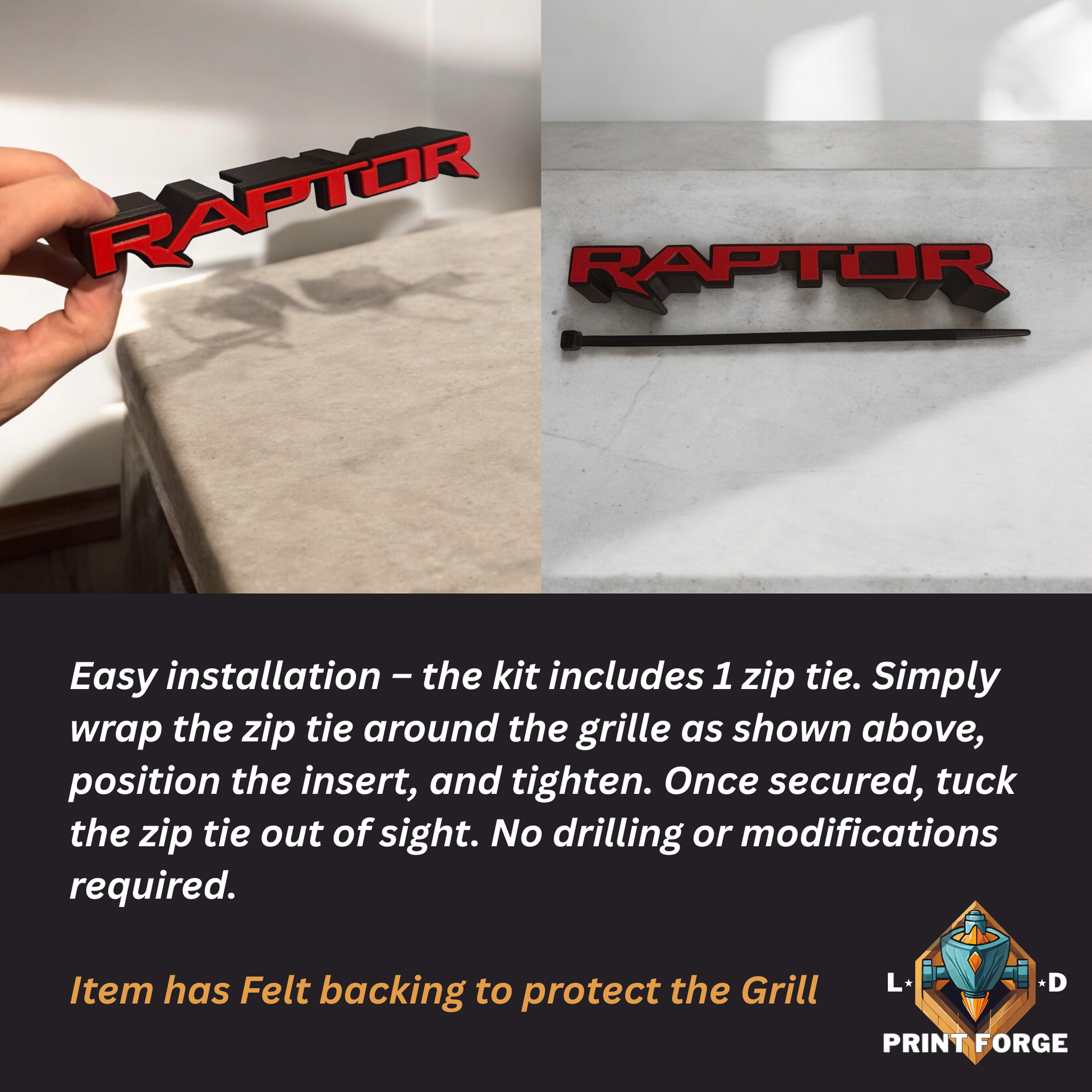🔥 Upgrade your front grille with our custom “RAPTOR” Front Grille Emblem Badge, designed to add bold styling without permanent modifications. This aftermarket grille badge mounts securely using a concealed zip-tie system, delivering a clean, factory-inspired look that stands out on the road.